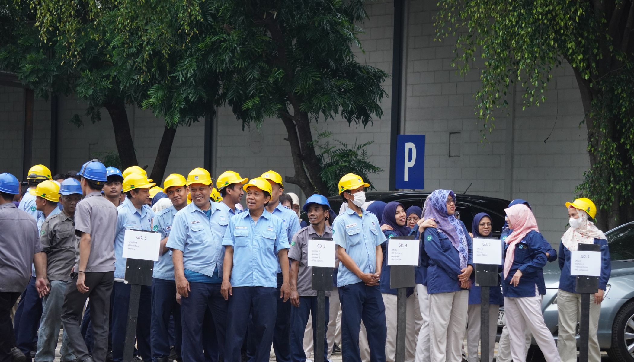Upon hearing the alarm, all employees must leave their work areas calmly through designated evacuation routes. These routes are typically explained during the briefing before the fire drill. Everyone then gathers at the assembly point to ensure no one is left behind.