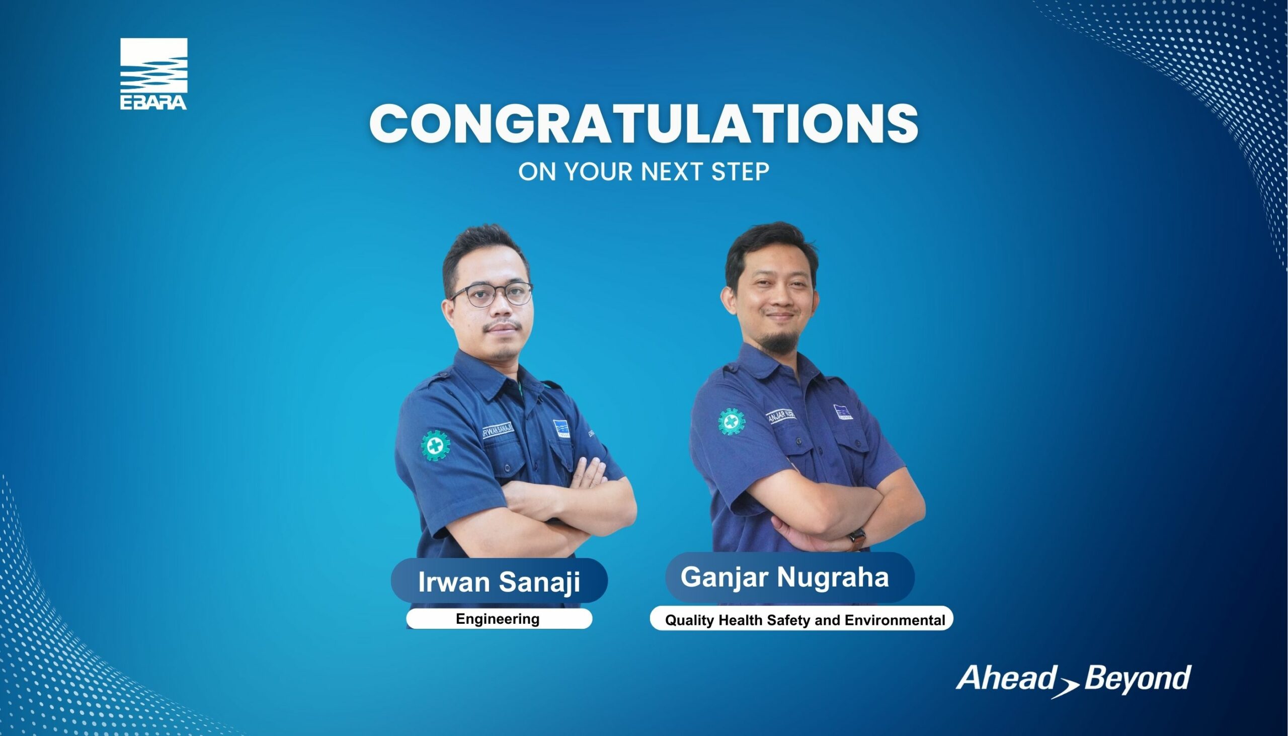 Our Global Career Development Program (GCDP) continues to empower employees with international experience. This quarter, we are thrilled to announce that Ganjar Nugraha and Irwan Sanaji have been selected for secondments to EBARA Environmental Plant Co., Ltd. in Japan and EBARA Bombas América do Sul LTDA in Brazil, respectively. Their experiences will enhance their professional growth and prepare them for future leadership roles within the EBARA Group.